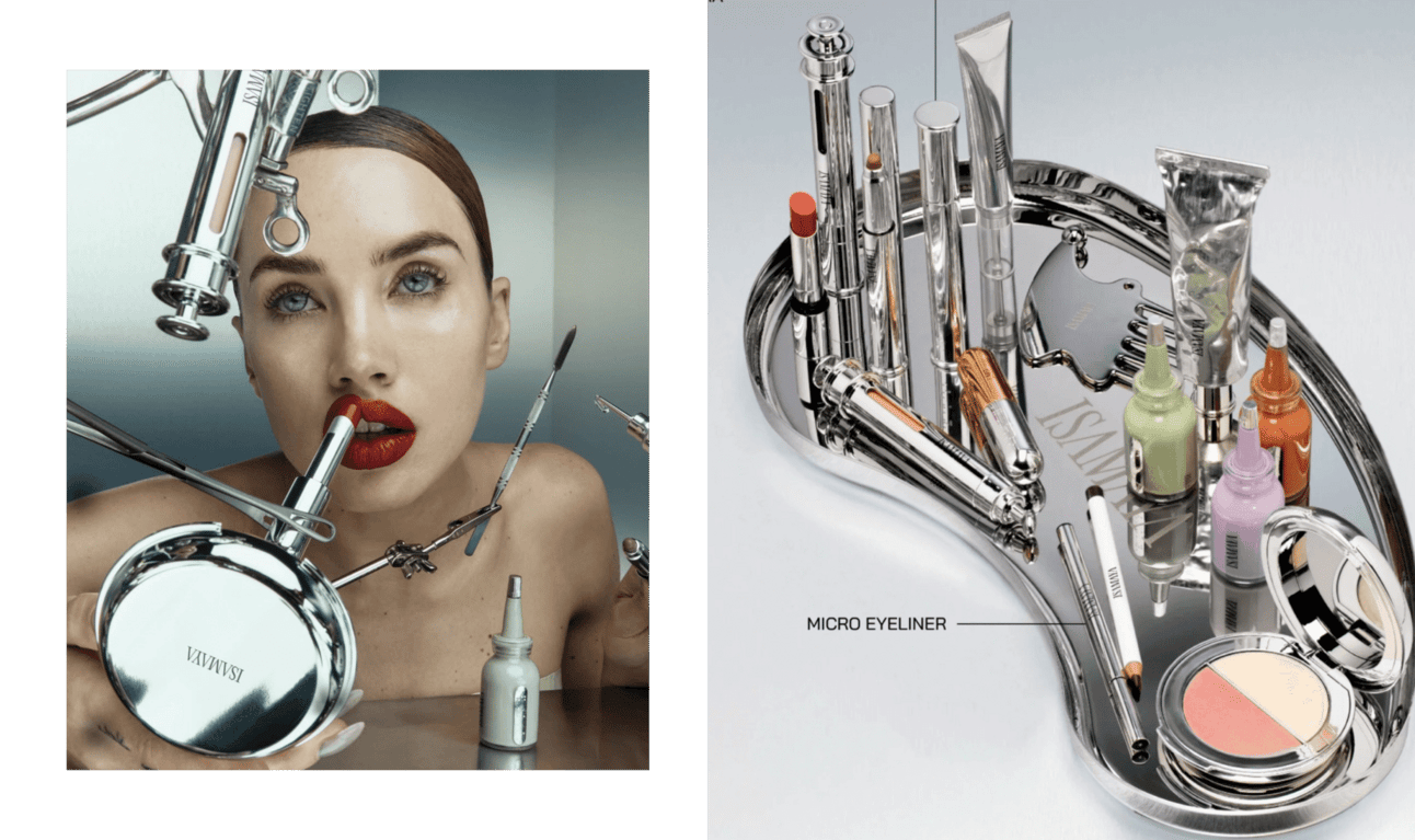 Debuting in 2022, Industrial cemented Isamaya Beauty’s reputation as a disruptor. It embraced the visual language of BDSM—pierced product caps, a mascara wrapped in black rubber, 3D-printed with a sculpted naked torso. This collection challenged traditional beauty standards, embracing a raw, mechanical aesthetic.