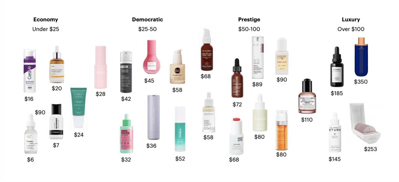 Screen from research: Categorization of beauty brands by price