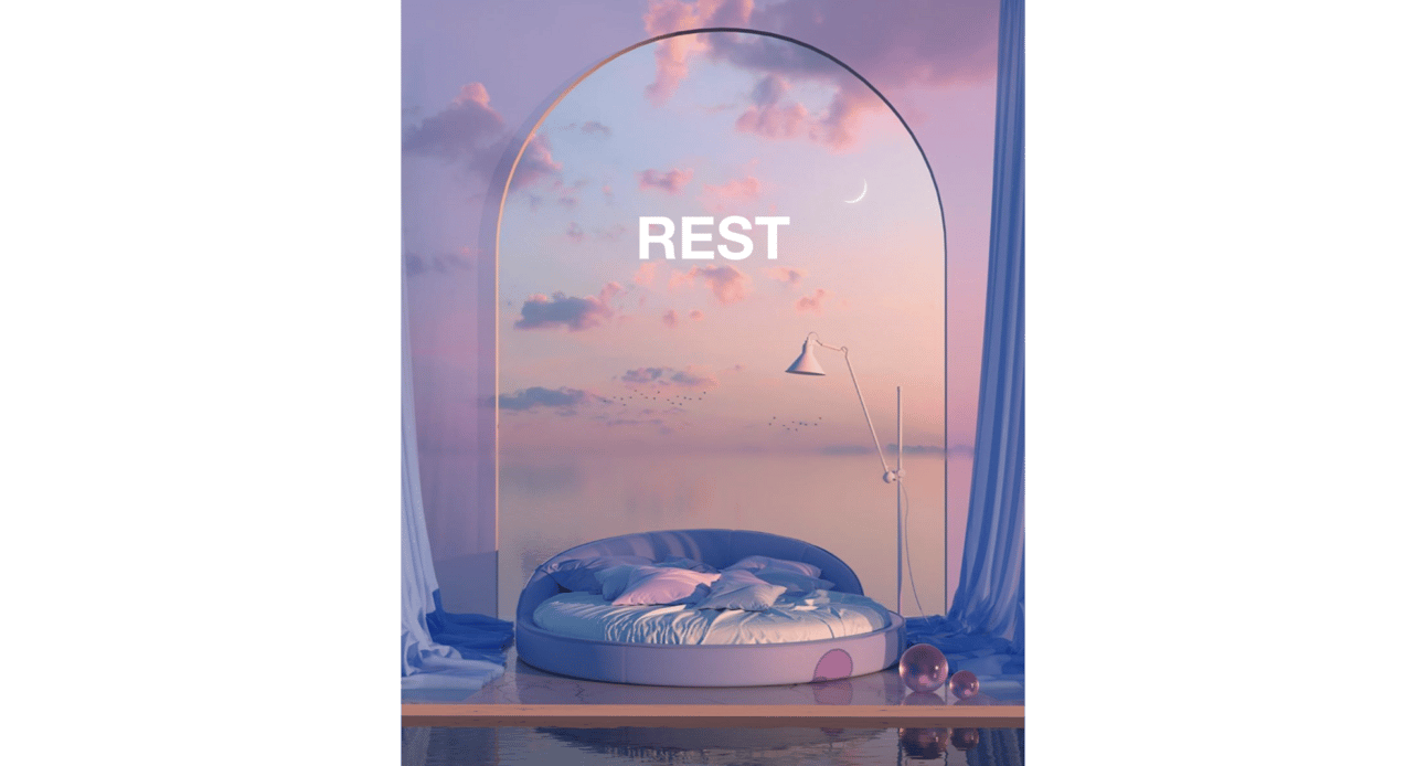 We avoided black typography, as it would have disrupted the serene and restful atmosphere we aimed to create. The white text contrasts subtly against the background, ensuring readability while preserving the soft, minimalist vibe.