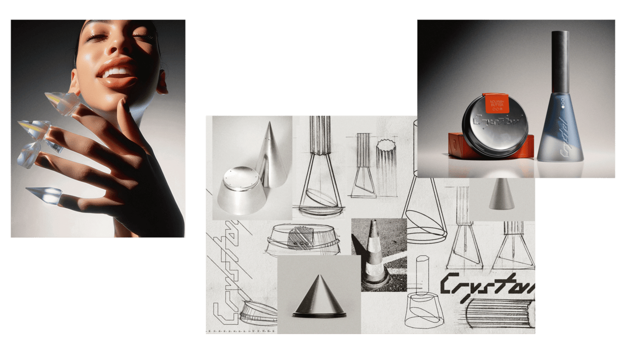 This is our creation in the nail care industry that we have done for the last six months. Meet Crystal, our next-generation nail care brand concept that merges a futuristic and science-backed approach. Imagine, in the augmented reality of the future, traditional physical colors and designs on nails may become outdated, as any style can be selected in the digital world. This shift emphasises the importance of nail health over aesthetics. That’s why we created a set for healthier nails.
