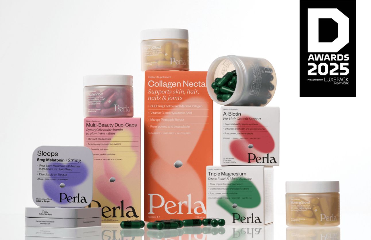 We won 1st place at the Dieline — Oscar in the world of packaging! Our project for Perla Helsa’s new beauty-focused supplement line took home 1st place in the Health category. We’ve been shaping this project through a big part of 2024 and this win feels extra sweet.