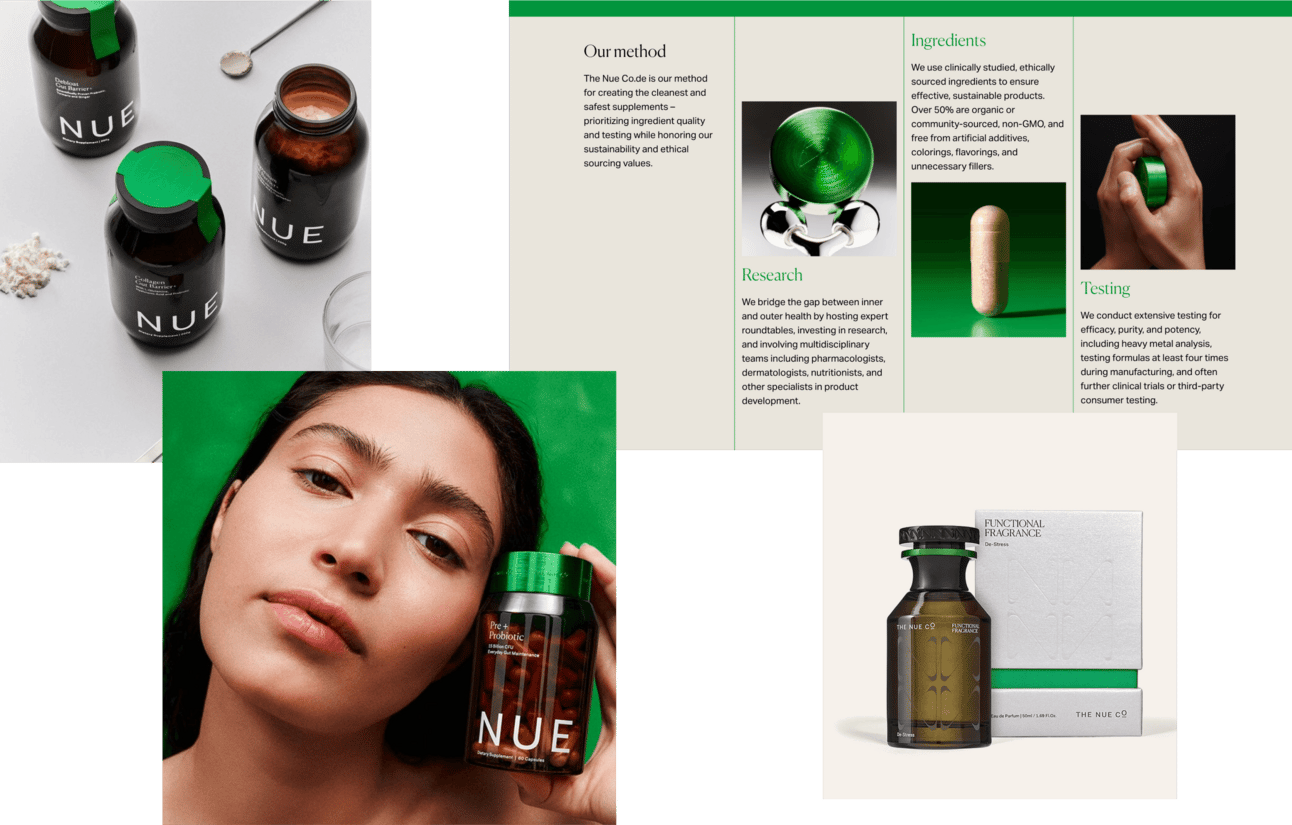 At its core, The Nue Co. sells trust. The tone is scientific but never cold — it’s the kind of brand your therapist might recommend, and your designer friend already loves. They turned probiotics into a lifestyle essential, not a medical afterthought.